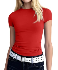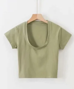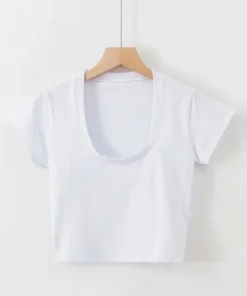 Summer Sexy T Shirt Tops for Women Clothes Stretch Slim Tees Shirt Femme U Neck Short Sleeve T-shirts Streetwea Crop Top