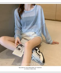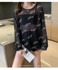 Summer Famous Anime Mickey Mouse Brand Mesh Shirt Women Sun Protection Transparent Long Sleeve Blouse Ladies T-shirt