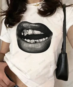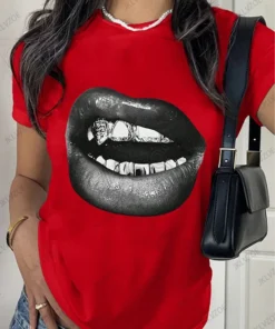 Summer Sporty T-Shirts Lip Printed Female Clothing Short Sleeve O-neck Tees Funny Women T Shirt Vintage Unisex Tops
