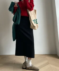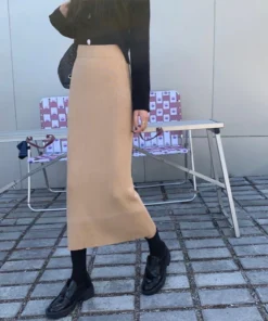Temperament Black Slim Fit Long Skirt Women High Waist Knitted Straight One-Step Skirt Korean Fashion Office Lady Pencil Skirts