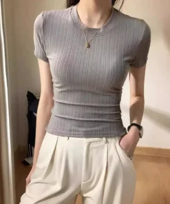 Summer Womens Y2k Harajuku T-shirt Casual Short Sleeve Tops Korean Fashion Knitted Clothes for Women White Black T-shirts 2024