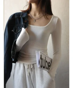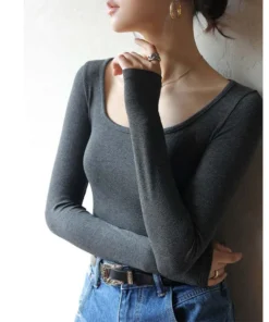 T-shirt Autumn Winter Low Neck Undercoat Women’s Spring Autumn Top Long sleeve Slim fit inside and outside