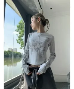 Women Autumn T-shirt Gothic Grunge Y2K Aesthetic Clothes Long Sleeve Button Down Slim Fit Tops Fashion Casual Shirts Female