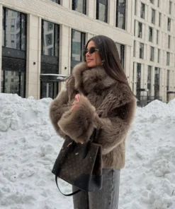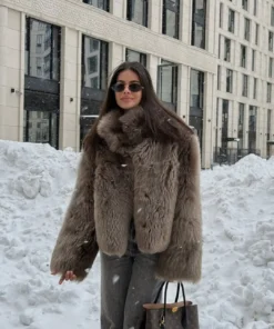 Winter Women Warm Faux Fur Coats Fashion Browns Long Sleeve Stand Collar Short Jackets 2025 Lady High Street Commute Outerwear