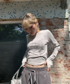 Vintage Women Clothes Y2K T-shirts 2024 Blusas O-neck Long Sleeve Print Tunic Woman Clothing Fashion Casual Crop Tops Shirts