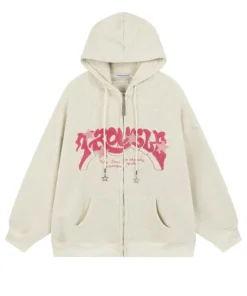 Y2k Zip Up Hoodie Women Spring Retro Embroidered Letter Loose Long Sleeve Tops 2025 Casual Hooded Sweatshirts Harajuku Jackets