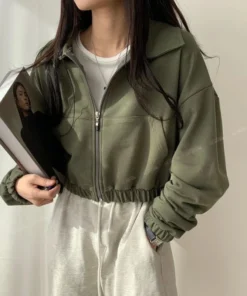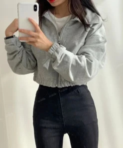 High Street Short Zipper Hoodies Sweatshirts Spring Autumn Women Clothing Long Sleeve Solid Casual Cardigan Top Fashion Korean
