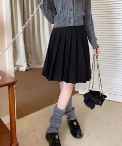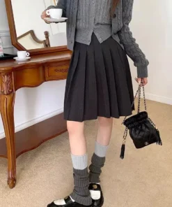 High Waist A- Line Mini Skirt Women’s Spring Autumn Woolen Pleated Sweet And Spicy Style Fashionable Slimming Skirts