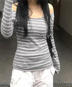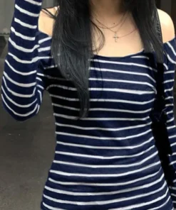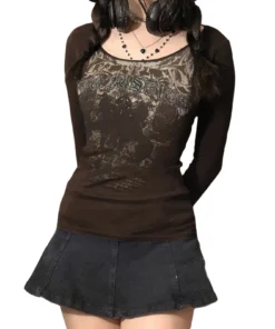 Harajuku Retro Aesthetic Y2K Emo Girls Long Sleeve Tops Goth Punk Rock Hip Hop Fashion T-Shirts Sexy Slim Chic Womens Streetwear