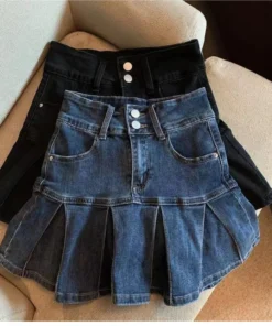 High Waist A- Line Mini Skirt Women’s Denim Pleated Skirt Summer American Retro Sexy Short Skirt plus Size Anti-Light