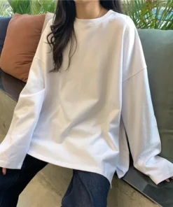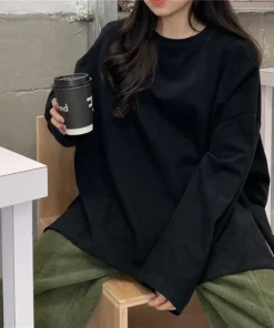 Harajuku Long T Shirt Spring Autumn Solid Simple Oversized T-shirt for Women Goth T-shirts Split White Black Long Sleeve Tops