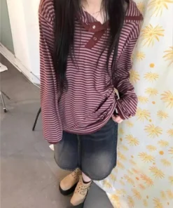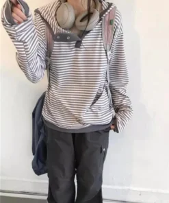 Preppy Style Korean Hoodies Hooded Striped Long Sleeve Sweatshirts 2024 Ropa Mujer Casual Fashion Hoodie Women Clothing Y2k Tops