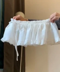 Retro Lace Trim Pleated White Mini Skirt Women’s High Waist Short Ballet Slim Fit Cake Puffy Skirt Summer Fashion Half Body Skir