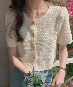 New Summer Short Sleeve O-Neck Women Shirt Sweet White Shirt Blouse Women Tops 2025 Blouses Shirts Blusas Para Mujer Blusa XL183