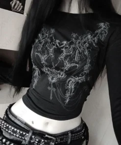 Punk Crop Tops Women T shirt Gothic Streetwear Long sleeves Hip Hop Tees Femme Vintage Clothes Grunge Y2k T shirts Aesthetic Top