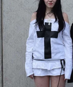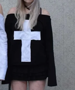 Y2k Graphic Cross Wings Print Long Sleeve Women Grunge Fairy T-shirt Harajuku Tee 2000s Aesthetic Punk Style Clothes Streetwear