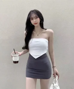 Y2k American retro short sleeved vest T-shirt emo girl cut top women’s summer shoulder slim fit Sleeveless top