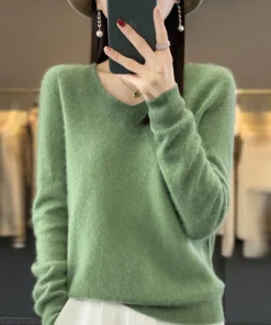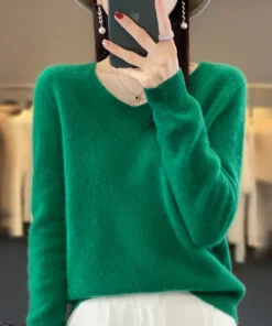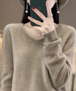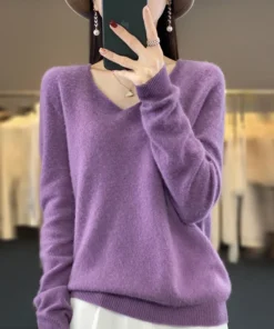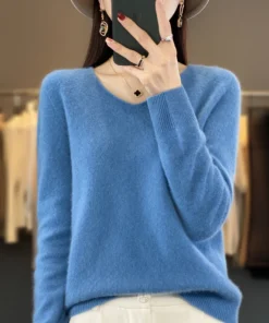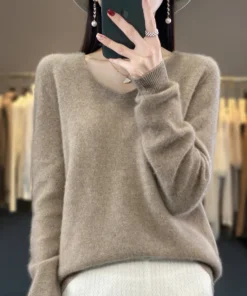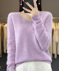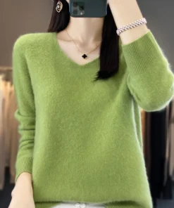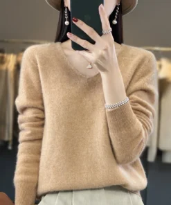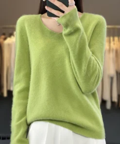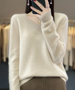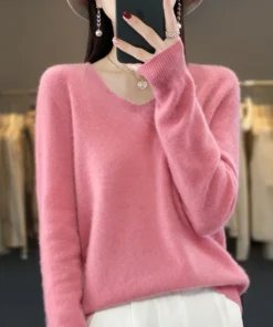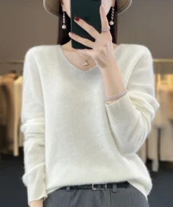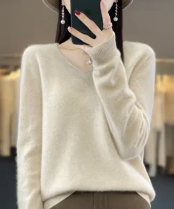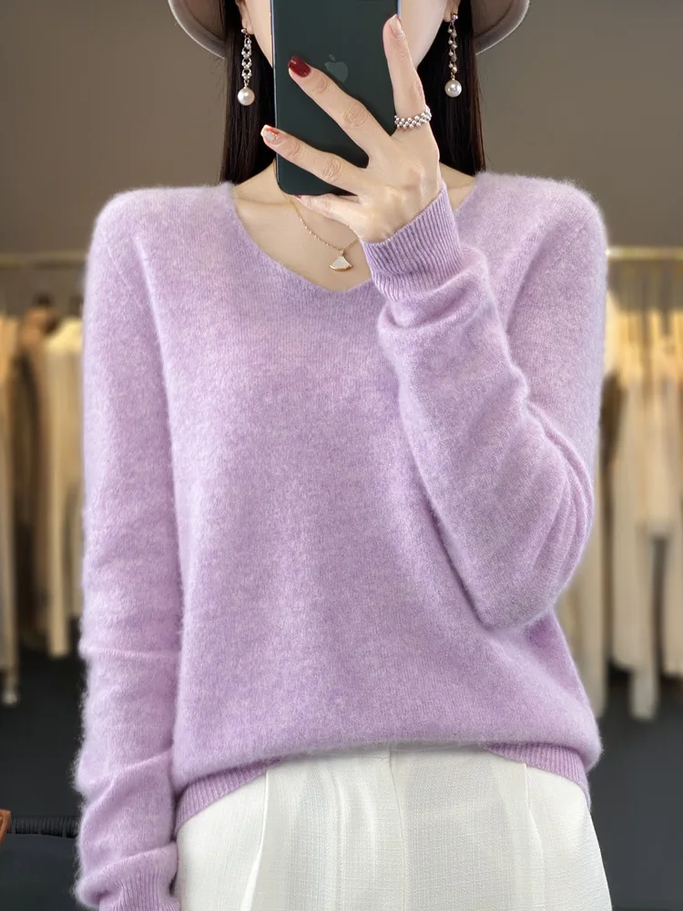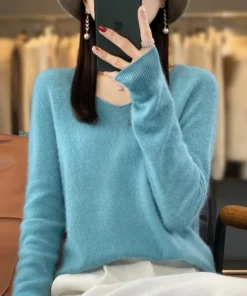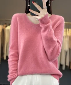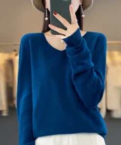 Basics 2024 Autumn Winter Women Sweater 100% Merino Wool V-Neck Knitwear Solid Office Lady Pullover Long Sleeve Cashmere Clothes