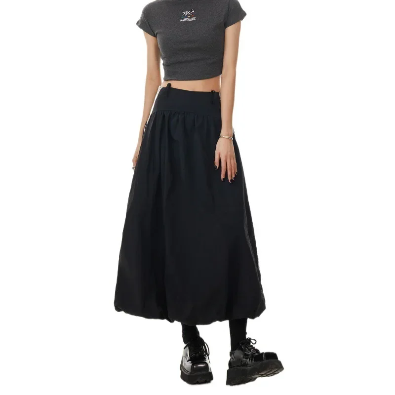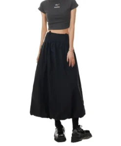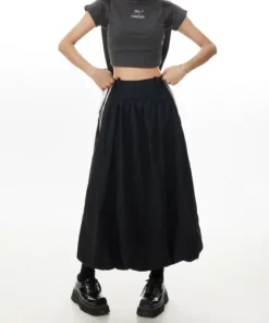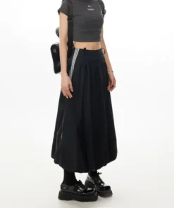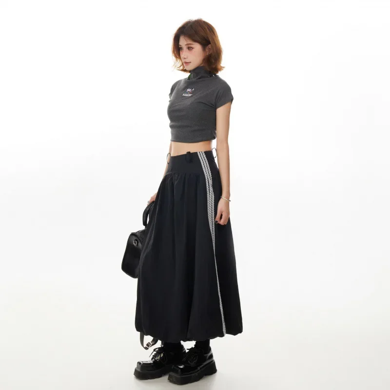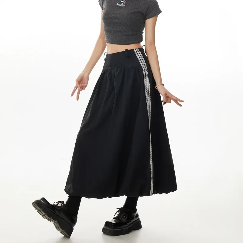 Black Stripe Lace Trim A- Line Midi Skirt Women’s High Waist Summer Fashion Loose Workwear Umbrella Skirt Elegant Style