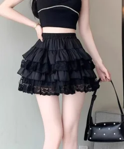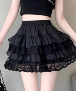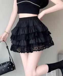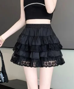 Elastic Gothic Lace Tutu Skirt Women Black Mesh Detail Petticoat Sexy Mini Tulle Skirts Party Club Wear Dancer