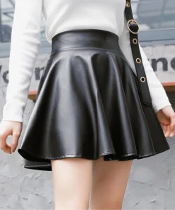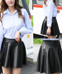 Fashion Faux Leather Skirts High Waist Elastic Mini Short Skirt Multipurpose Women Girls Clothing For Skater Work Nightclub