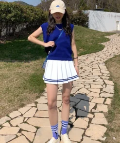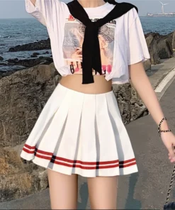 Fashion Preppy Style Pleated Skirts Women 2025 Spring Summer New A Line Short Dress Sweet Girl High Waist Petchwork Skirt Street