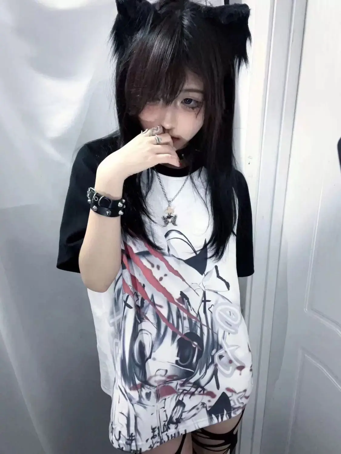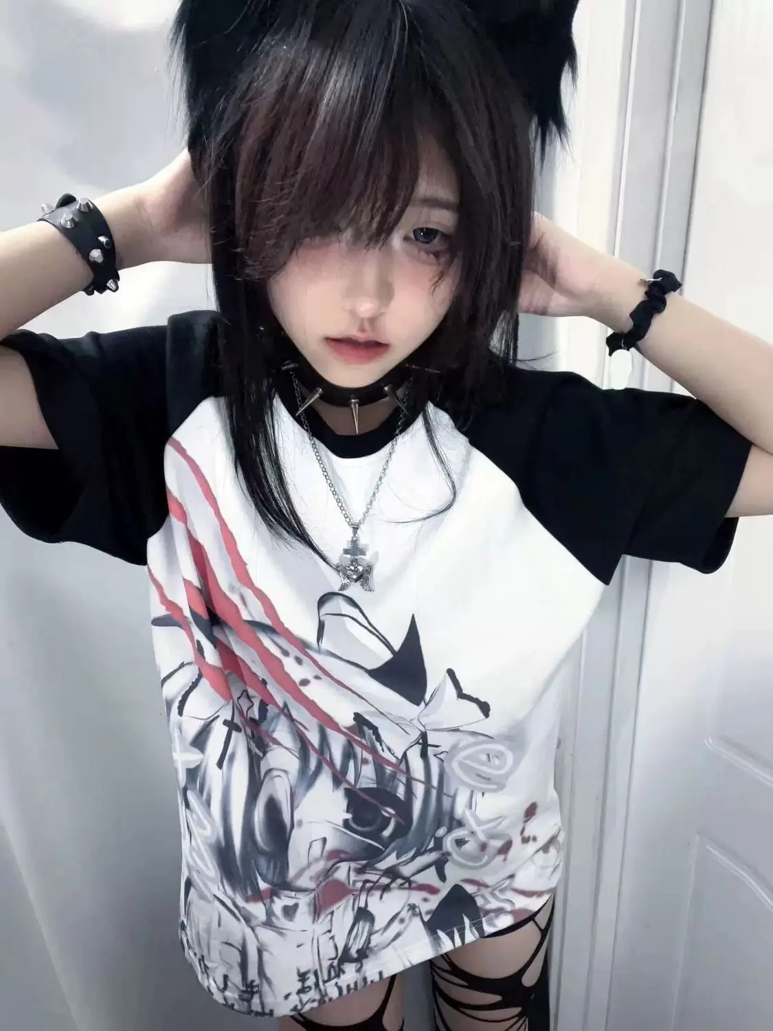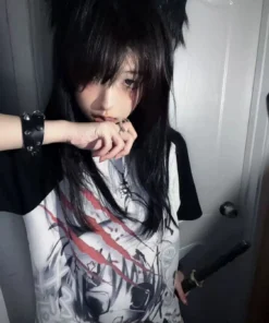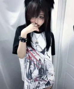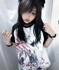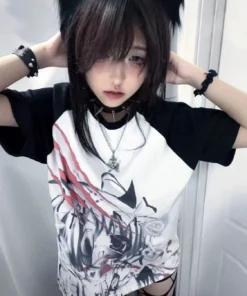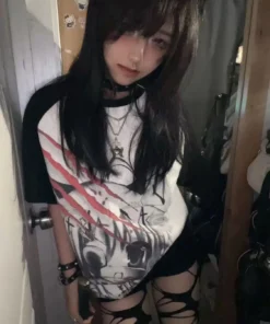 Girls Short Tops Y2k Japanese Harajuku T Shirt Subculture Loose Print Women Popular Basics Pulovers Black Half Sleeve Tees