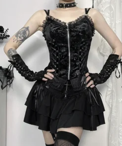 Material: High-quality jersey fabricnFit Type: Regular fit, natural waistlinenSilhouette: Classic A-line shapenPattern Type: Solid color with intricate gothic cross appliquesnSeasonality: Versatile for all seasonsnDecoration: Elegant appliques for a sophisticated edgennn|Gothic Mini Skirts|nn**Embrace Your Dark Side**nnStep into the world of gothic fashion with our Gothic Black Lace Cross Mini Skirt, a statement piece that exudes dark elegance. Designed with a high waist and pleated A-line silhouette, this mini skirt is a testament to the Y2K grunge punk aesthetic. The solid coloration is punctuated by intricate lace cross appliques, offering a touch of vintage charm that's perfect for those who dare to stand out. The mini length ensures a daring and provocative look, while the natural waistline accentuates your figure.nn**Versatile Style for All Occasions**nnThis skirt is not just a garment; it's a statement that transcends fashion. Whether you're heading to a concert, a themed party, or simply looking to add an alt touch to your wardrobe, this Gothic Pleated Mini Skirt is the perfect addition. Its jersey fabric provides a comfortable fit, while the pleated design offers a subtle movement that catches the eye. The all-season adaptability makes it a versatile piece that can be paired with various tops and shoes, ensuring that you're always ready to make a bold fashion statement.nn**Tailored for the Alternative Fashion Enthusiast**nnCrafted with attention to detail, this Gothic Pleated Mini Skirt is designed for those who embrace the alternative fashion scene. The natural waistline and non-stretch fabric ensure a flattering, classic fit, while the mini length offers a modern twist on vintage style. The gothic cross appliques are not just decorative; they are a nod to the subculture, making this skirt a must-have for alt fashion lovers. Embrace your inner gothic princess with this intricate and stylish garment, making a statement wherever you go.