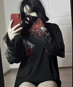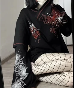 Gothic Y2k Fashion Design Harajuku Spider T Shirt Women Goth Dark Streetwear Design Tees Black Female Long Sleeve Girl Y2K Top
