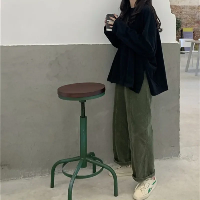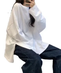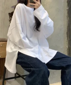 Harajuku Long T Shirt Spring Autumn Solid Simple Oversized T-shirt for Women Goth T-shirts Split White Black Long Sleeve Tops