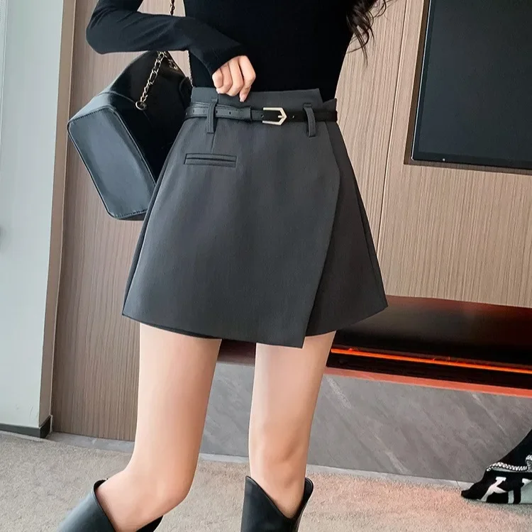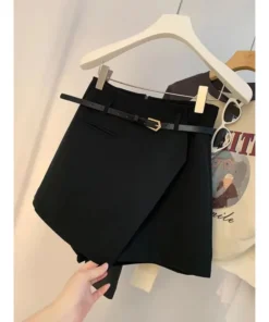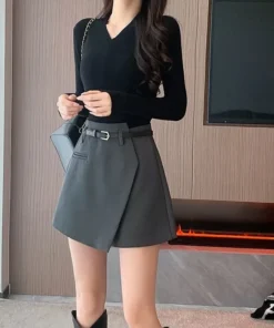 High Waist A- Line Mini Skirt Spring Autumn Women’s Fashion Short Skirt Polyester Fiber Pocket Design Bodycon Skirt