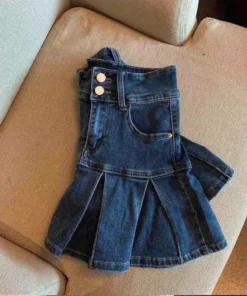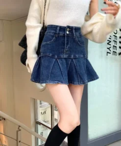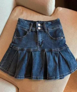 High-Waisted Denim Skirt Women’s New Pleated Retro Blue Skinny A-line Flanged Wrap Hip Skirt