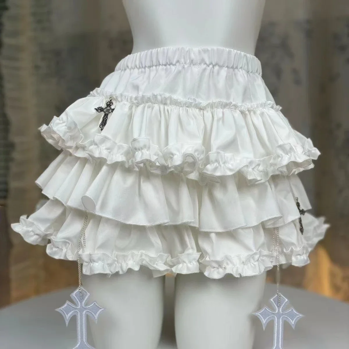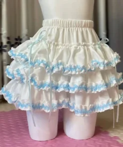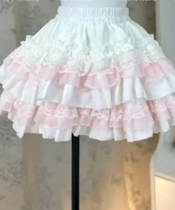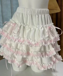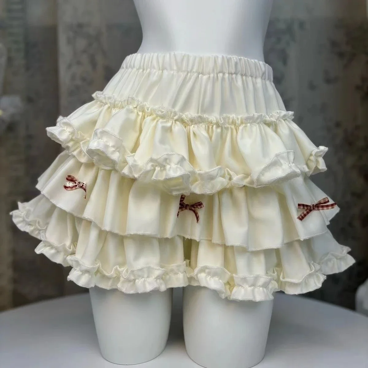 Japanese Kawaii Lolita Style Cake Skirt Women Sweet Pink Bow Ruffle Party Mini Skirts Ballet Girls Cute Y2k Fashion Faldas Mujer
