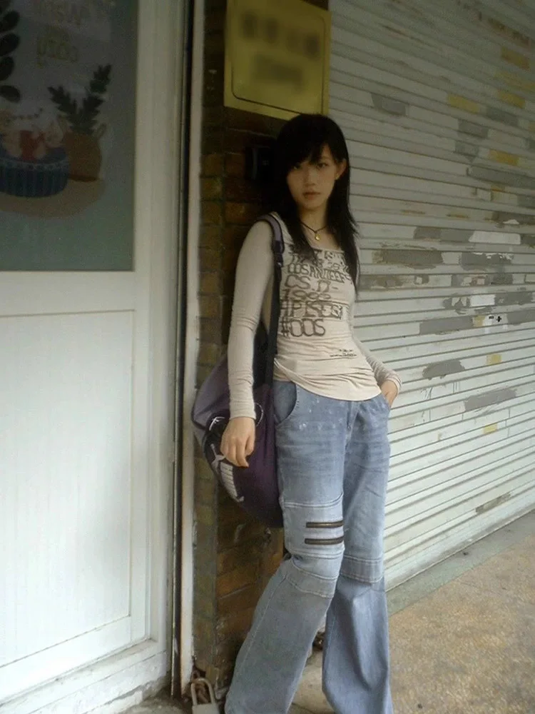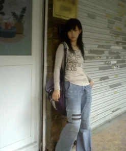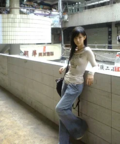 Japanese Y2k Letter Print T-shirt Trashy 2000s Style Long Sleeve Ribbed Tops Vintage Harajuku Streetwear American Retro
