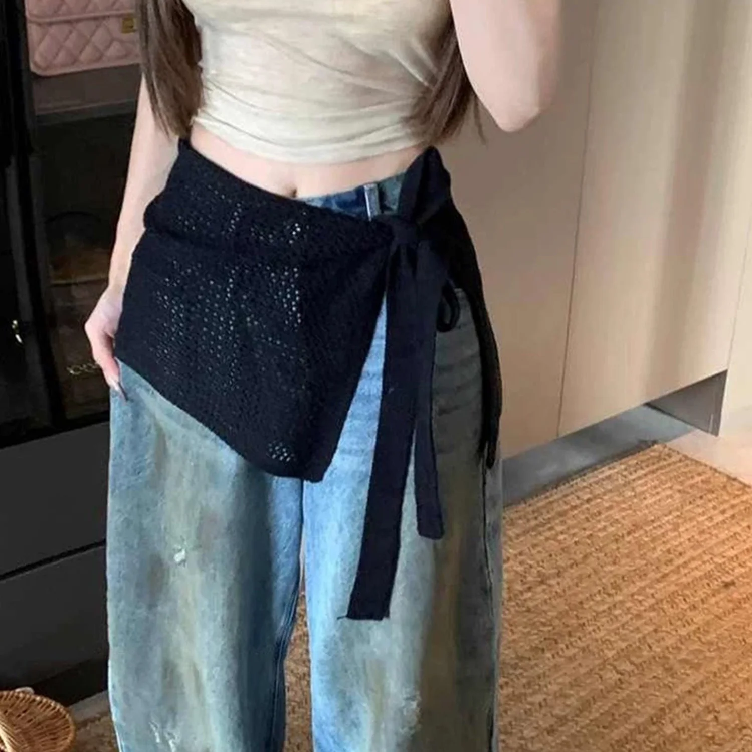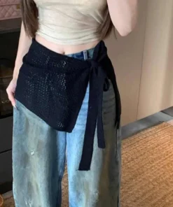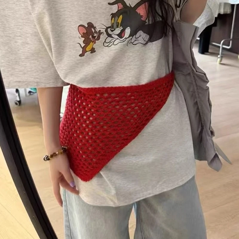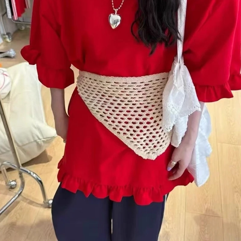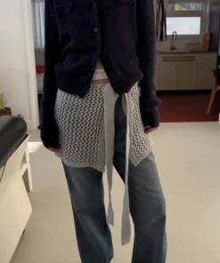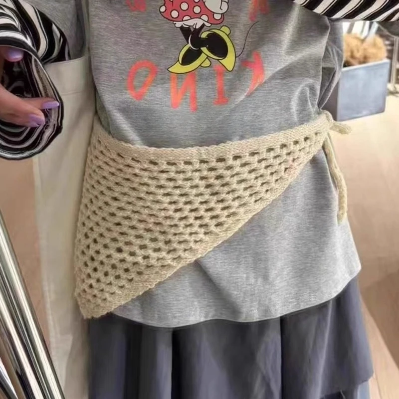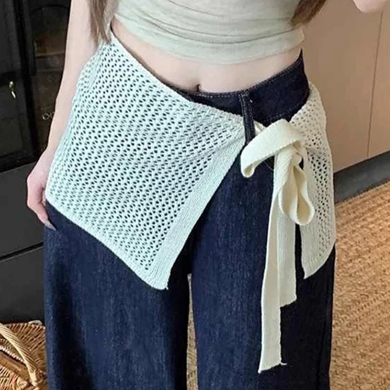 Korean Fashion Knitted Skirt Tie-Up Crochet Skirt Overlay Hollow-out Knit Layering Piece Summer Fashion Accessories for Women