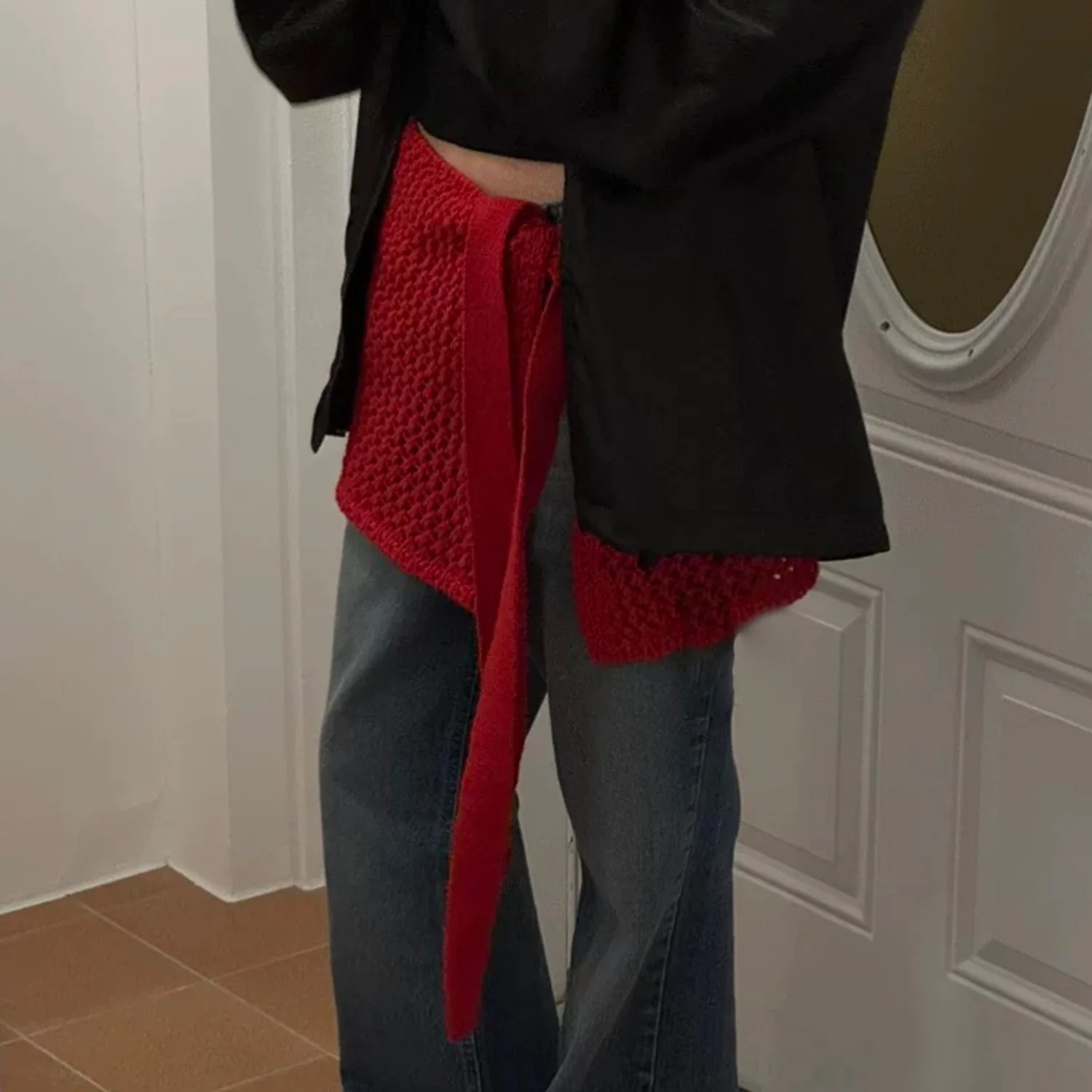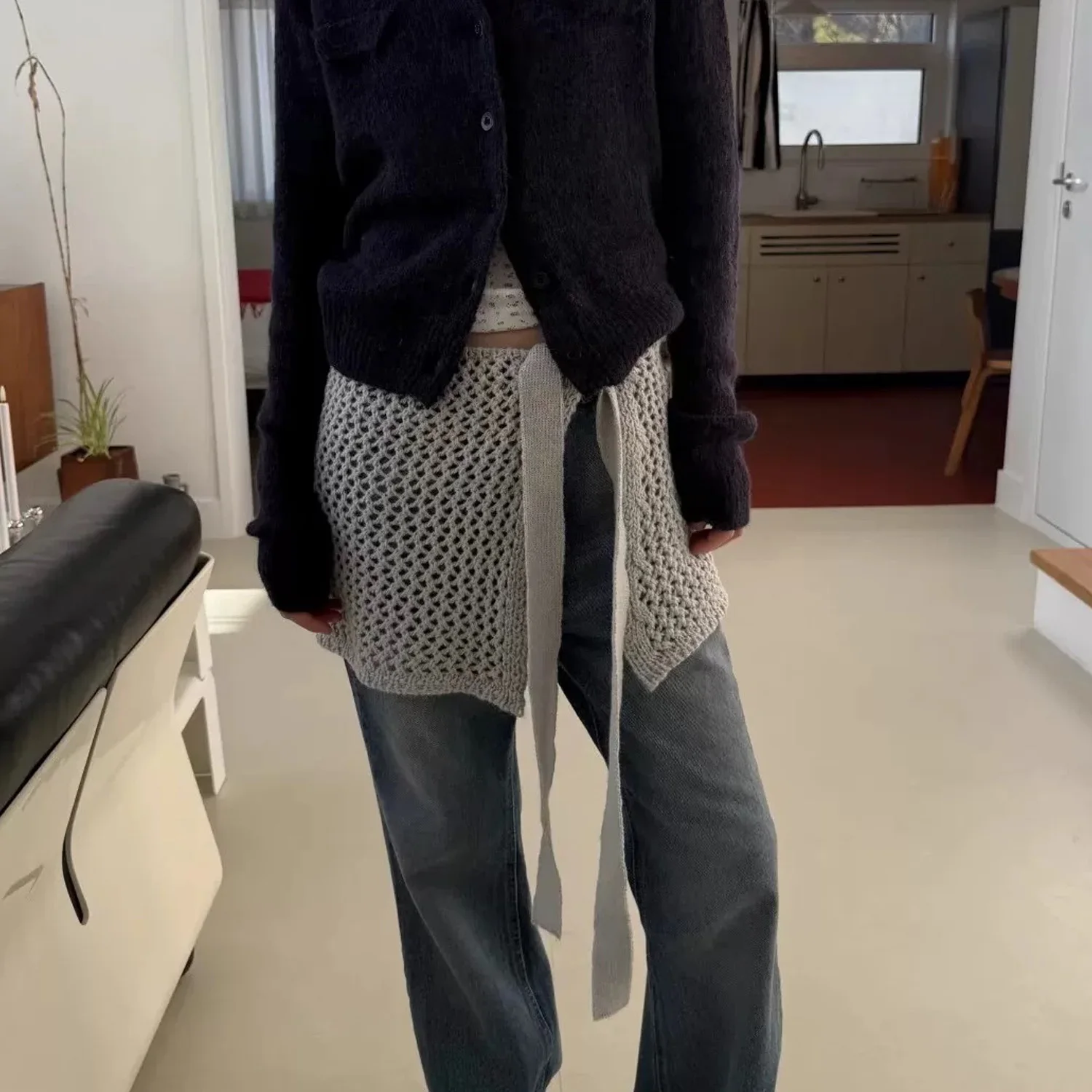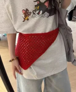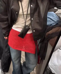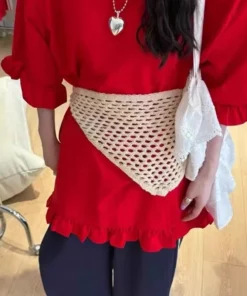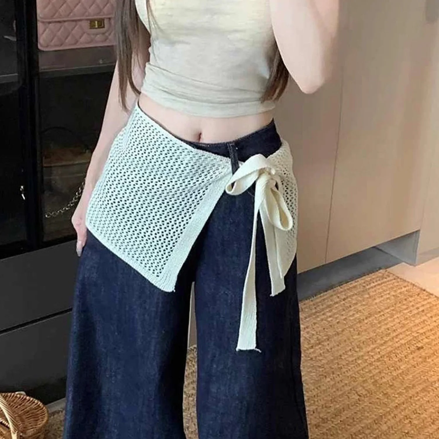 Korean Fashion Knitted Skirt Tie-Up Crochet Skirt Overlay Hollow-out Knit Layering Piece Summer Fashion Accessories for Women