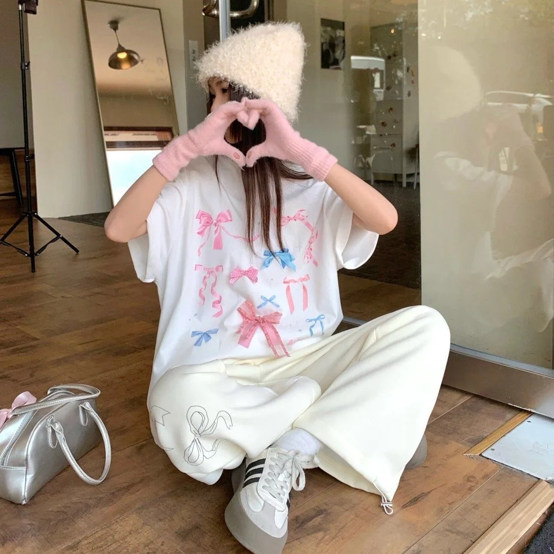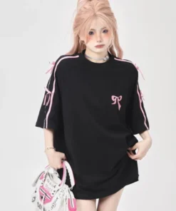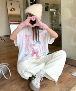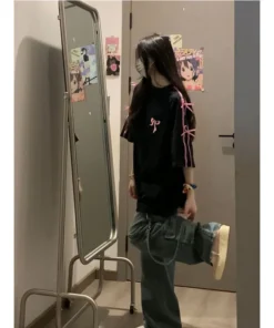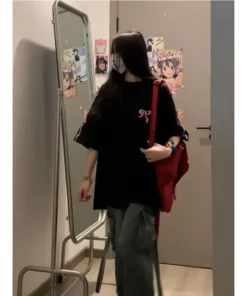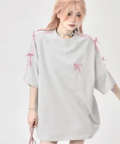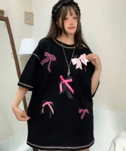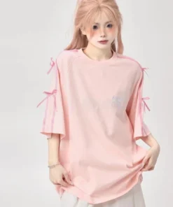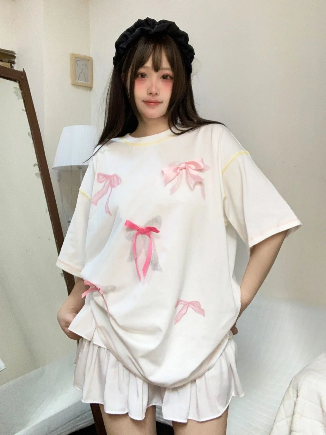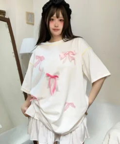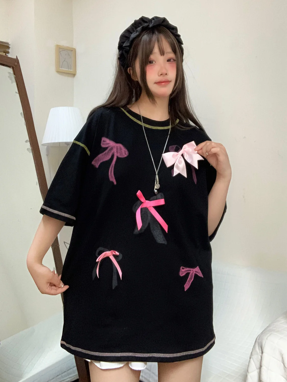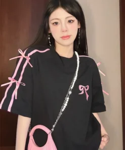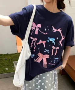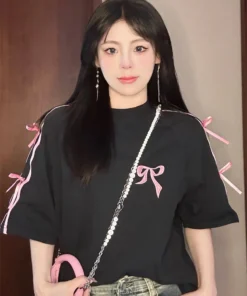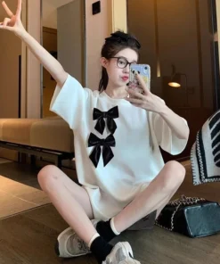 Korean style three-dimensional bow pure cotton short-sleeved summer new niche lady style design embroidered casual versatile top