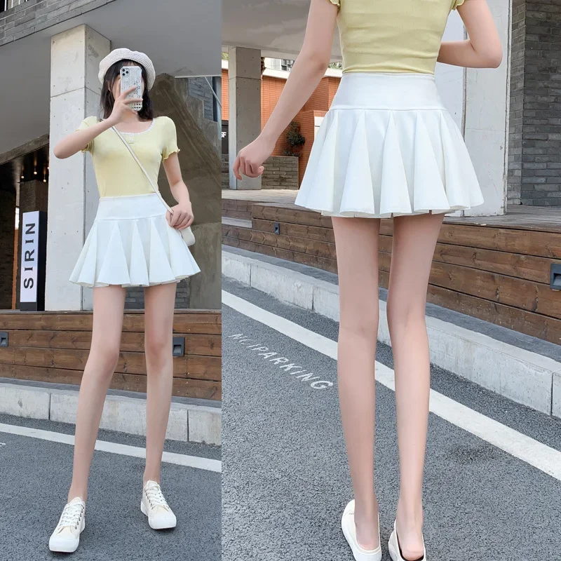 Material: PolyesternFit Type: SlimnWaistline: EmpirenSilhouette: PleatednDresses Length: Above Knee, MininSeason: All seasonnnn|Asian Style Women|nn**Versatile Style and Comfort**nThe Korean Style Women's Pleated Skirt Mini is the epitome of versatility, designed to complement various fashion styles and occasions. Whether you're heading to a casual meet-up or a more formal event, this skirt's high-waist silhouette and above-knee length make it a go-to piece for women who appreciate a blend of elegance and comfort. The polyester material ensures durability and slight stretch for a flattering fit, while the empire waistline adds a touch of sophistication to your outfit. The solid pattern type and slight stretch fabric type provide a timeless appeal that transcends the seasons, making this skater skirt a staple in your wardrobe.nn**Performance and Design**nCrafted for the modern woman, this mini high-waist skirt boasts a knitting fabric type that offers a snug fit without compromising on comfort. The pleated design adds a layer of visual interest, while the lack of decoration ensures that it remains a versatile piece that can be dressed up or down. The skirt's slim fit type is complemented by its ability to resist malfunctions, ensuring that you can dance or skate with confidence. With its all-season adaptability, the skirt is a perfect companion for various activities, from casual outings to more active engagements.nn**For Every Woman**nDesigned with the junior fashion enthusiast in mind, this skirt is not just a piece of clothing but a statement of style. The solid pattern type makes it easy to pair with various tops, while the mini length offers a playful yet sophisticated look. Whether you're a fan of Japanese white skirts or looking for a micro skirt to bend over in, this pleated skirt shorts option is sure to meet your needs. The empire waistline flatters a variety of body types, making it a suitable choice for women of all ages and sizes. As a part of the England Style sub-category, it merges the best of Korean and Japanese fashion, ensuring that you stand out in any crowd.