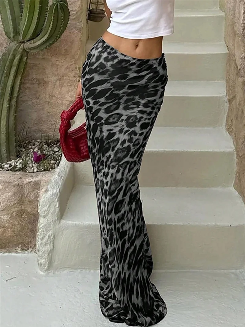 Leopard Print Slim-Fit Package Hip Skirt Floor-Length Skirt Women Europe And The United States Women’s Spring And Autumn Fashion