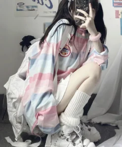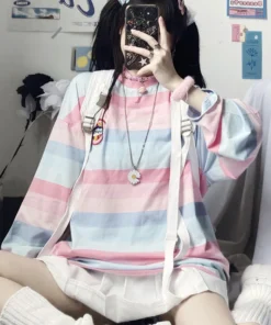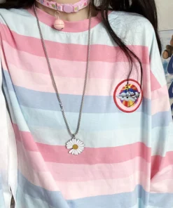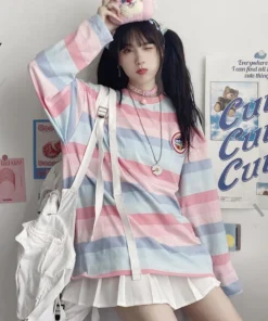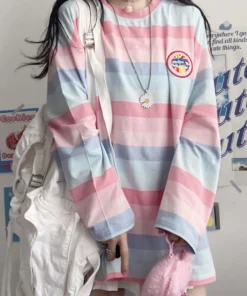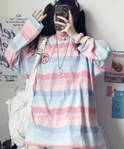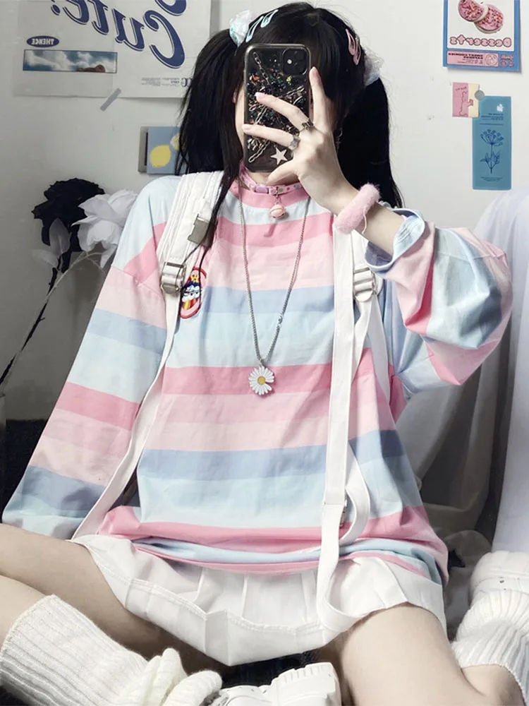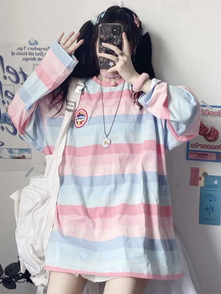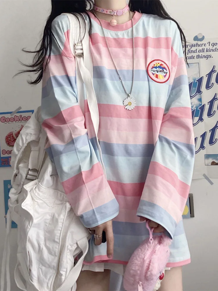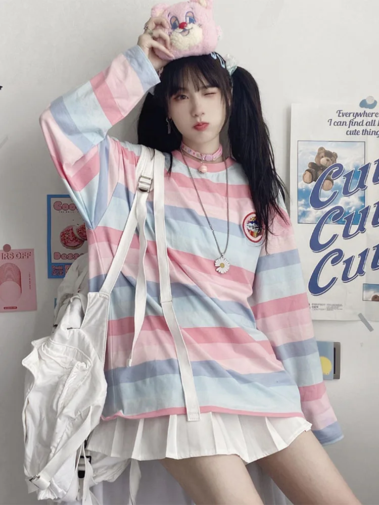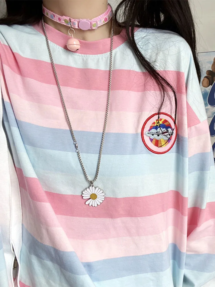 Long Sleeve T Shirt girl Christmas autumn embroidery stripe Tops Tees Women full Sleeve T-shirt Casual Female
