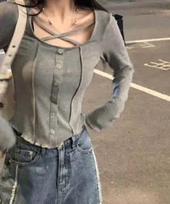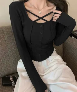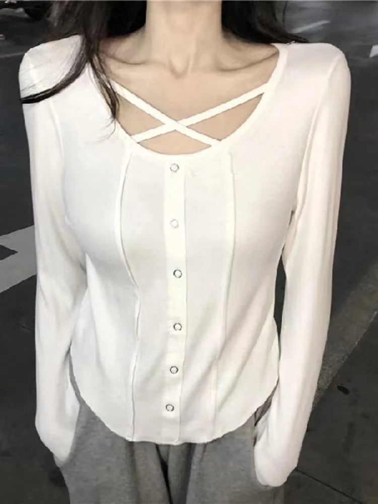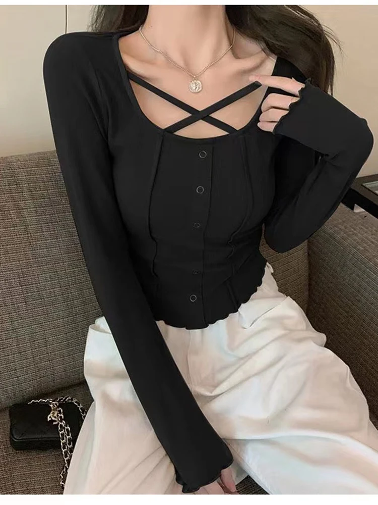Long Sleeve Tshirt Women Harajuku Korean Style Slim Sexy Tops Female Solid Color Tees Streetwear Spring T-shirts