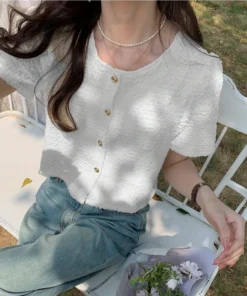 New Summer Short Sleeve O-Neck Women Shirt Sweet White Shirt Blouse Women Tops 2025 Blouses Shirts Blusas Para Mujer Blusa XL183