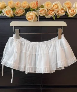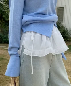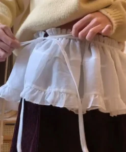 Plus size Spring All-Match French Lace Strap Design Fashion Pleated Skirt Fart Curtain Skirt Ruffle Trim Belted A- Line Skirt