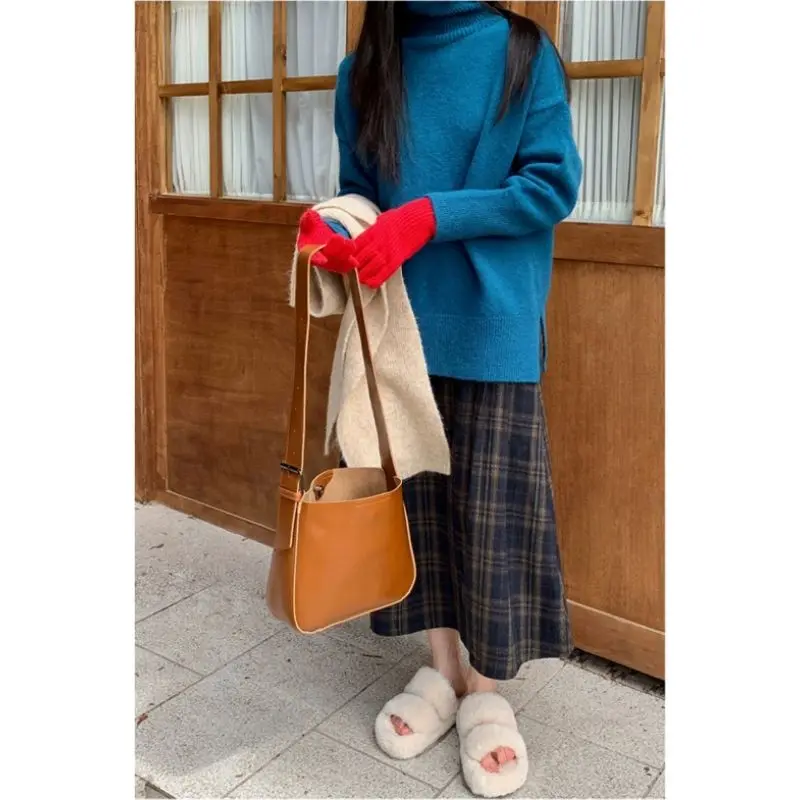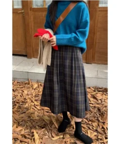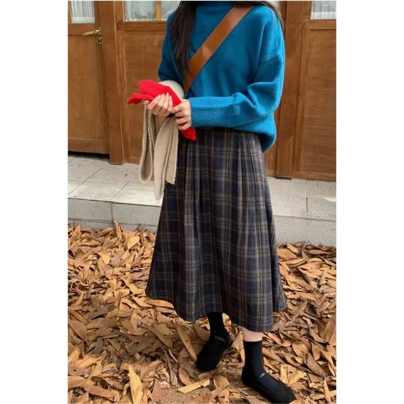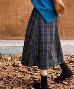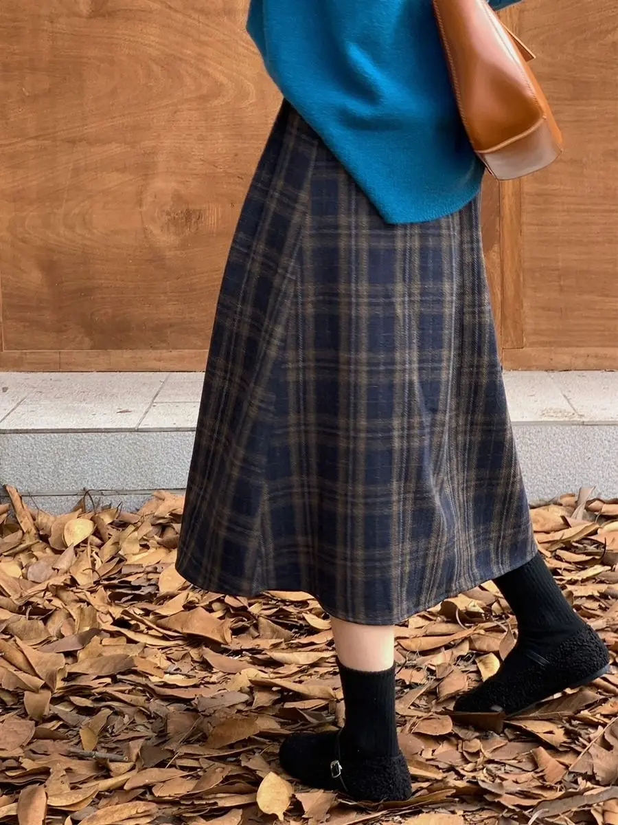 Retro All Match Plaid Woolen Umbrella Skirt, Half Skirt, Women’s Autumn and Winter A-line Skirt, High Waist Slimming Mid Length