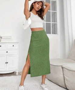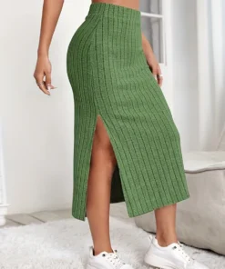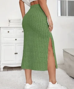 Ribbed Knit Side Split Skirt Casual Solid Long Skirt Sexy High Waist Split Midi Skirts Office Lady Bodycon A Line Skirts