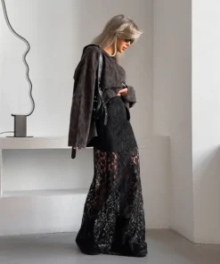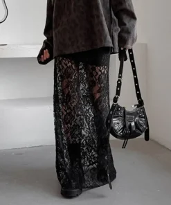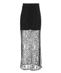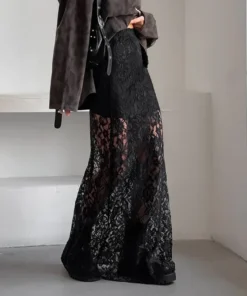 Sexy Lace See Through Slim Long Skirt Vintage Skirts for Women Fashion Elegant Temperament Spice Girl Black Skirts with Liner