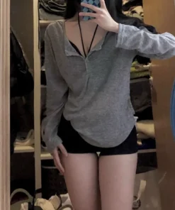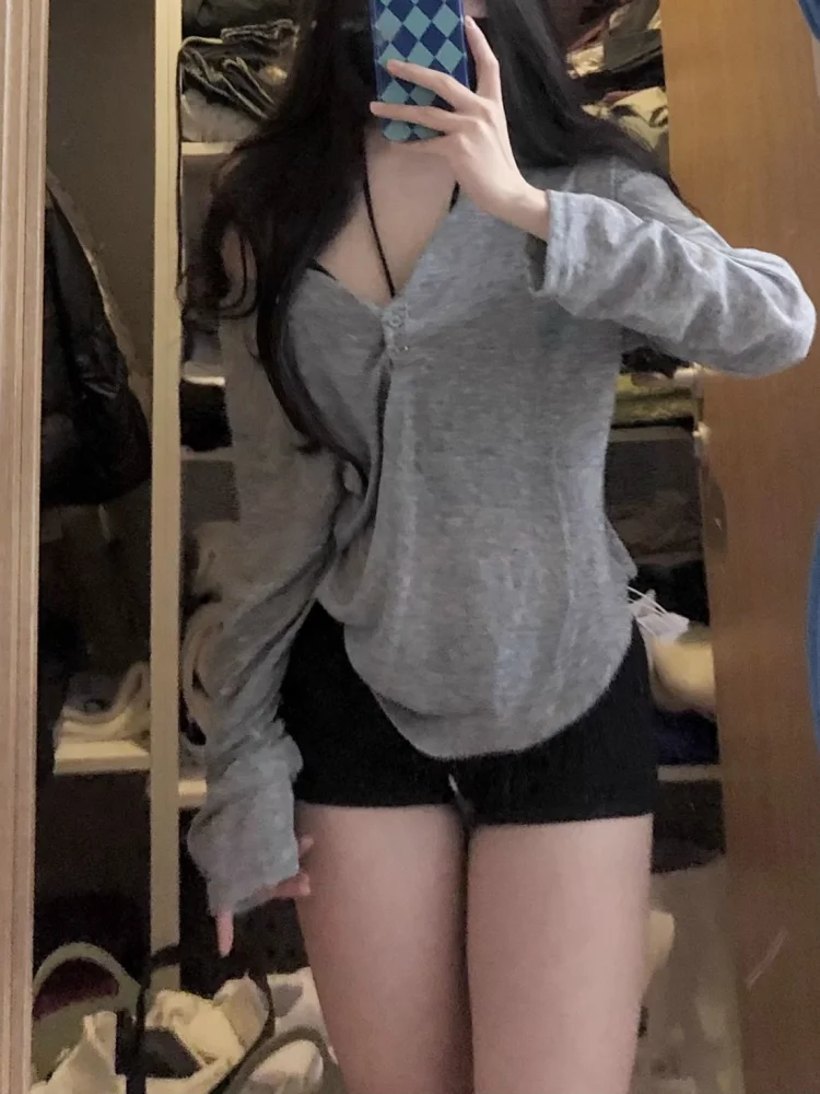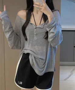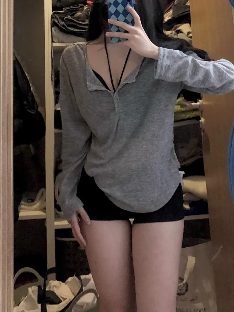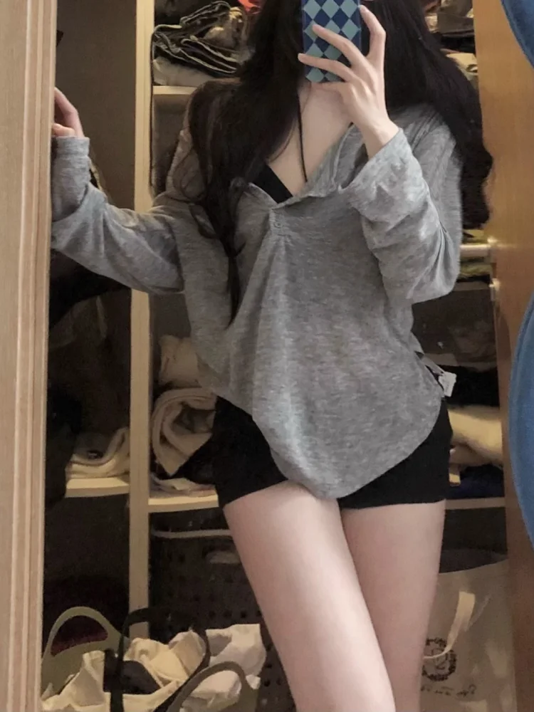 Sexy Pullovers Women T-shirts Casual Tops Long Sleeve Basic Clothes Autumn All-match Simple Tee Shirt Slim Gentle Seductive