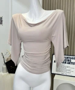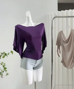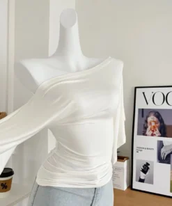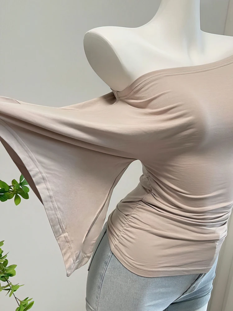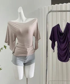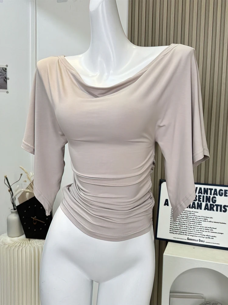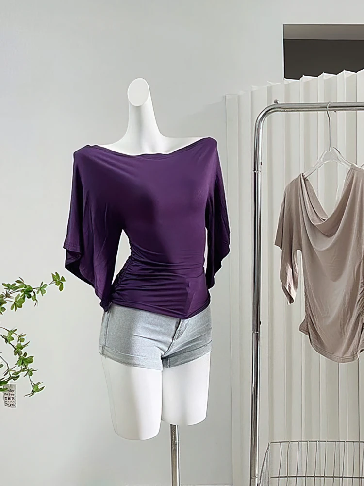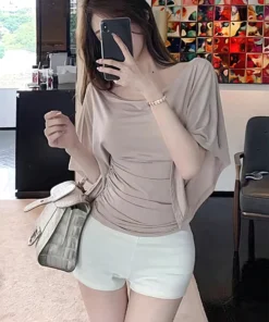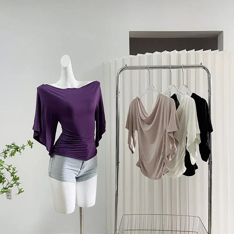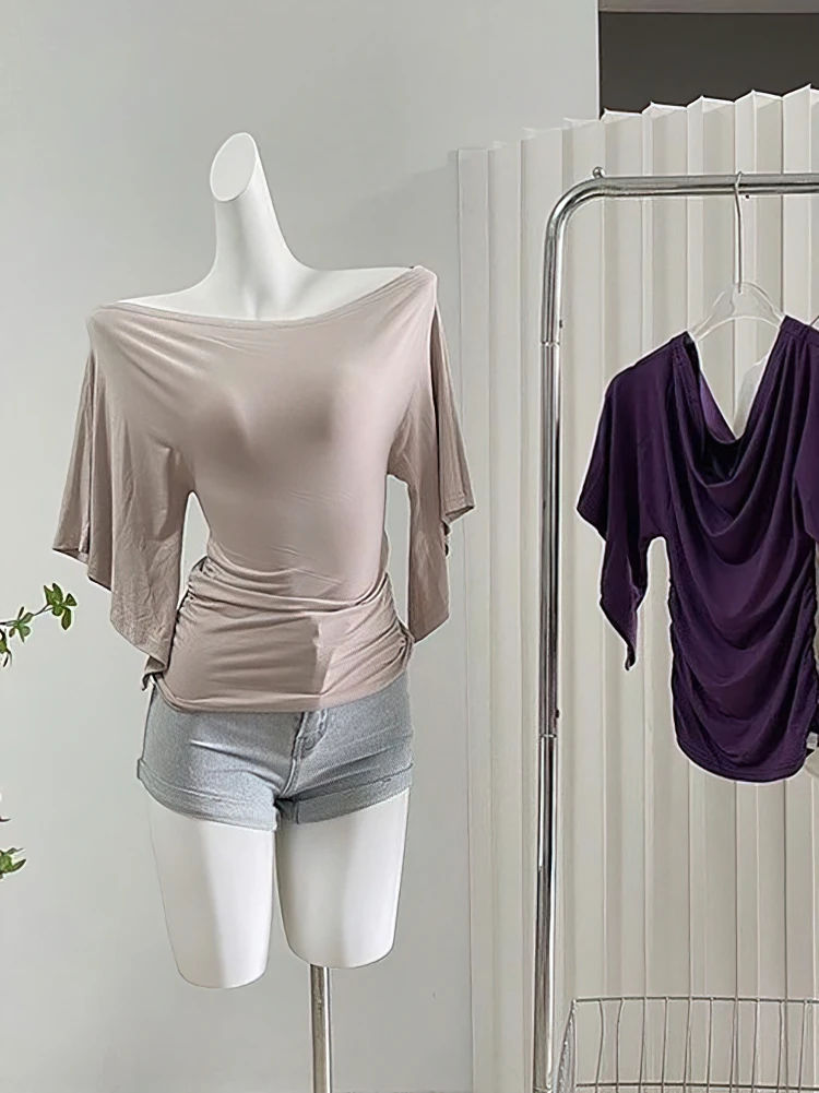 Sexy Summer Off Shoulder T shirt Women Elegant Batwing Short sleeve Cowl Neck Tops Korean Chic Tight Tshirt Lady Tees 2025 New