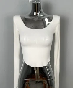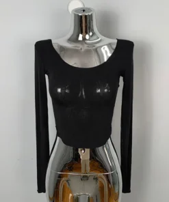 Skinny T Shirt Women Cotton Elastic Basic T-shirts Female Casual Tops Long Sleeve Sexy U-neck Side Slit Thin T-shirt see through