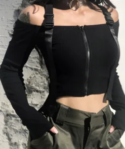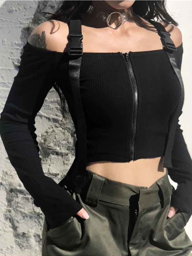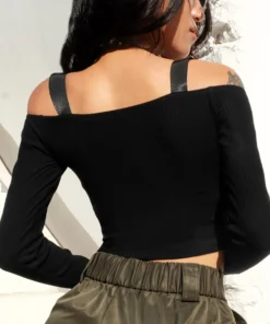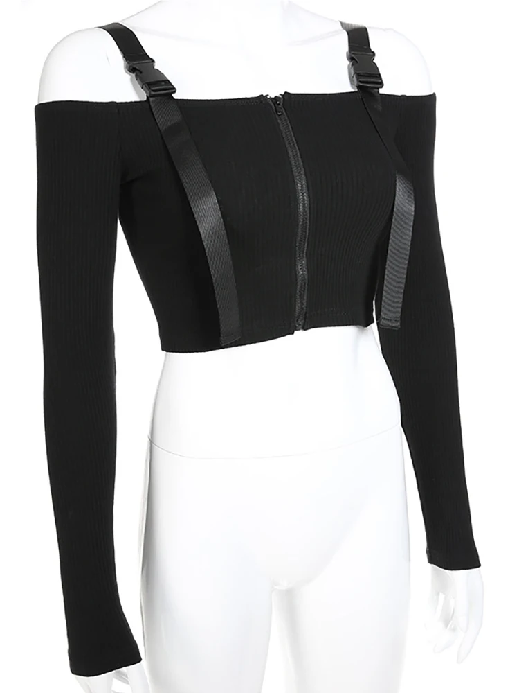 Spring T Shirt Women Long Sleeve T-shirt Crop Top 2023 Korean Fashion Style Feminina Knitted Cotton Black Sexy Short tshirt